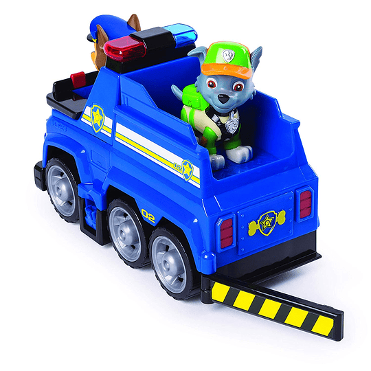 • ¡Únase a Chase en su Ultimate Police Cruiser, equipado con ruedas de trabajo, un asiento transformador, una barricada incorporada y un gancho de rescate extensible!
